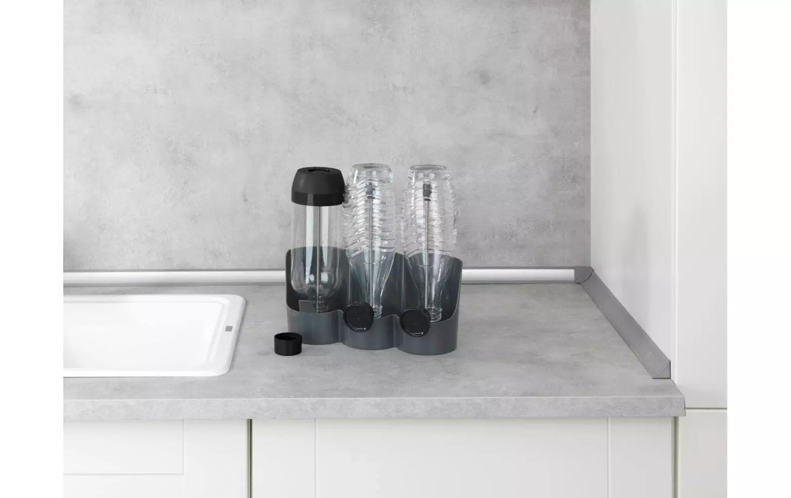 Porte-bouteilles avec dispositif de maintien pour 3 couvercles